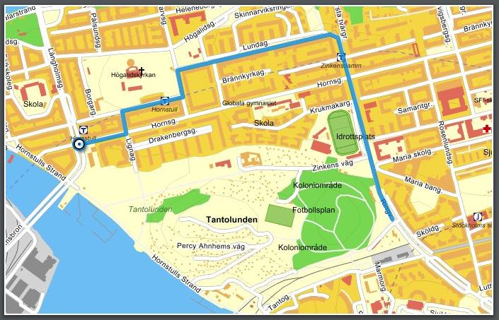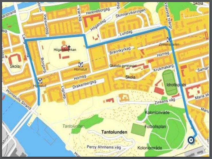 Wenn Sie Spikereifen haben oder Ihr Wohnmobil die Anforderungen der Umweltzone nicht erfüllt, können Sie eine alternative Route nehmen, die die Hornsgatan umgeht. Siehe die Karten unten für zwei alternative Routen.